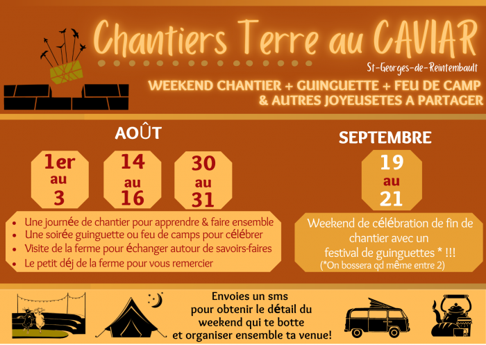 L'été dernier portait sur la thématique du chaux-chanvre, cette année ce sera la terre dans tout ses états : Isolation paille-terre, corps d'enduit de finition et joints à la terre seront au programme des chantiers de l'été.