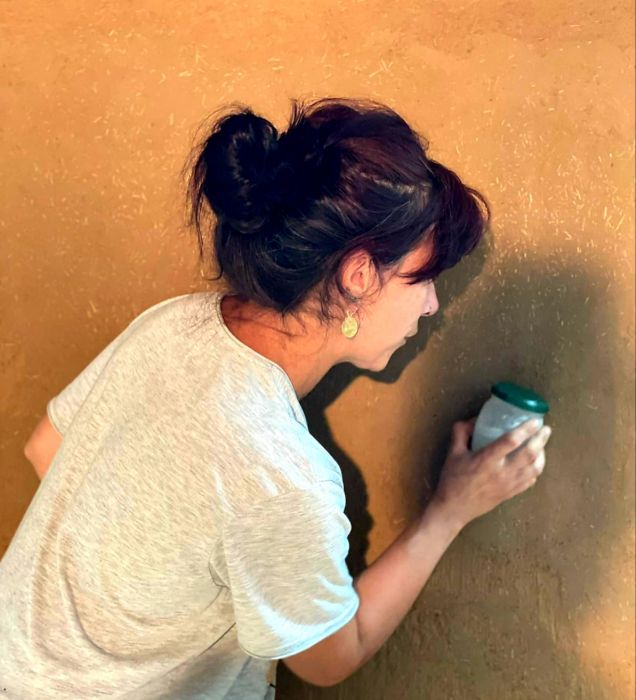 Enduit de terre/chaux/sable sur isolation paille-terre