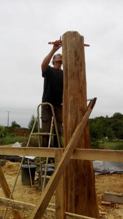 - Pose de la charpente & ossatures (poteau-poutre) avec charpentier