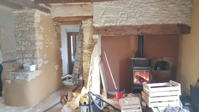 Agrandissement d’une phyto épuration en installant deux grands bacs de filtration. On avait construit la première phyto après un stage proposé par une asso, qui avait aussi quantifié sa taille. Elle était prévue pour gérer les eaux grises pour 3 personnes. Sauf qu’au bout de 3 ans, on voudrait ajouter à la gestion de eaux grises (eaux de lavages comme douche, lave vaisselle, lave linge…) les urines. Donc agrandissement très conséquent puisqu’on la double.
