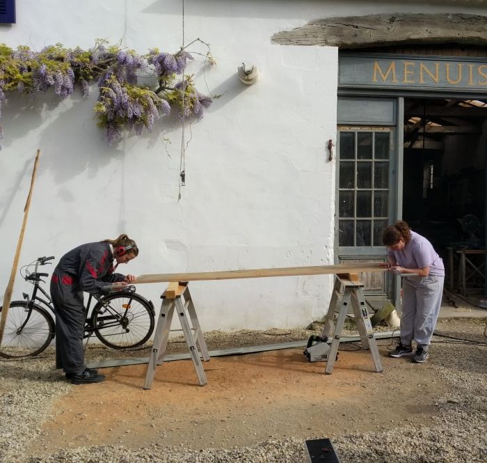 Une partie de l’équipe actuelle est arrivée en 2019 après un parcours itinérant de quelques années, se déplaçant au gré des chantiers. Elle a principalement travaillé pour une troupe de théâtre dans la région de Lyon et une association qui accueille des personnes en situation de fragilité dans la région de Toulouse.