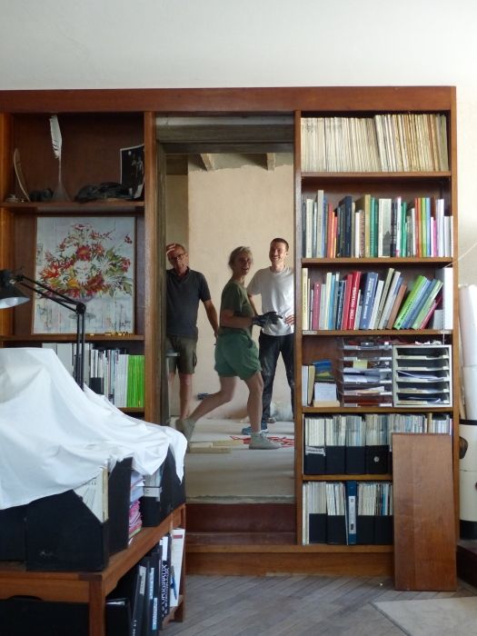 Nous habitons un lieu qui comprend de nombreux jardins, c’est une dimension qui nous semble importante, elle nous invite à rester en lien avec l’ordre naturel, le passage des saisons, c’est une manière de cultiver notre terre intérieure et nourrit notre travail de bâtisseurs.