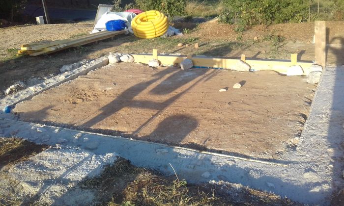 septembre/octobre 2023 : fondations cyclopéennes, soubassement en béton de chanvre, pose du hérisson