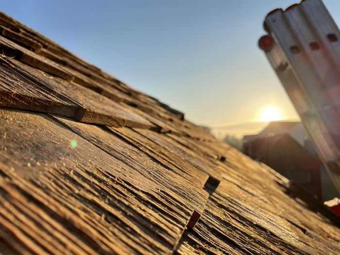 La toiture et le bardage extérieur en bardeaux de chêne