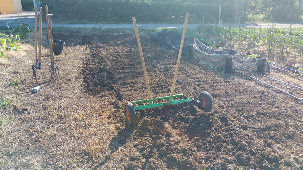 Notre objectif de l'année est de monter un "petit" bâtiment en bois qui nous permettra de travailler dans de bonnes conditions pour construire ensuite notre maison. Nous avons besoin de cet espace pour stocker nos matériaux, nos plans récup' et les légumes de garde en hiver.