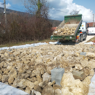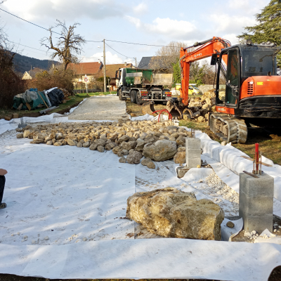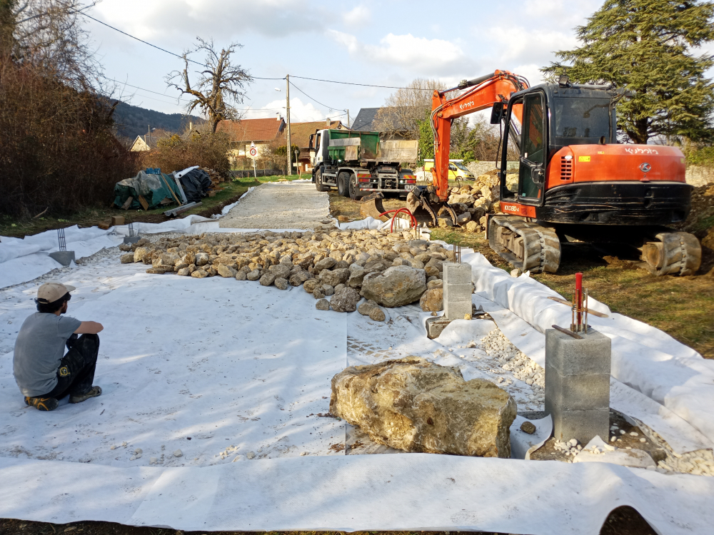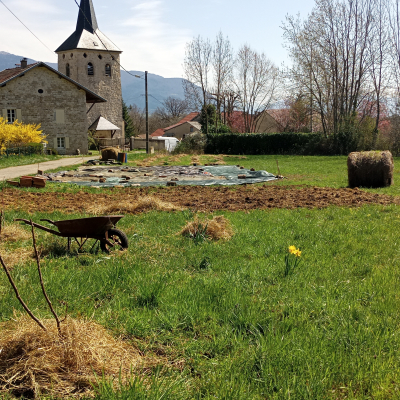 Nous habitons au cœur d’un joli village du Bugey. C’est beau et calme, la rivière un peu plus bas nous permet de nous ressourcer et de nous rafraîchir après une bonne journée de chantier.