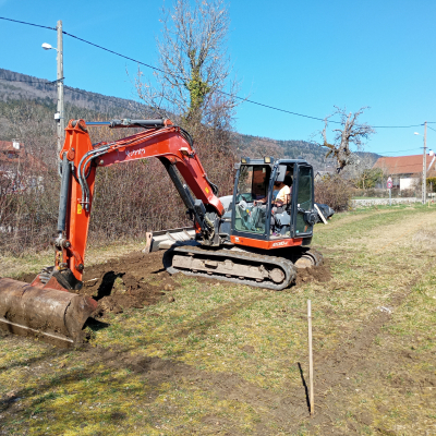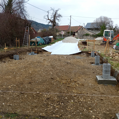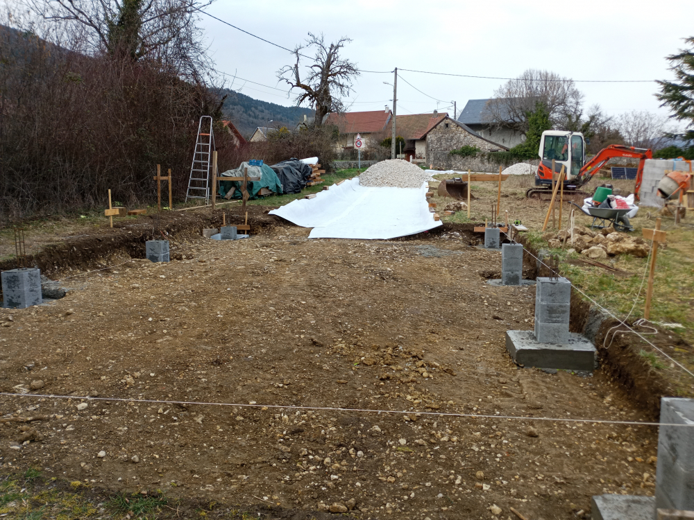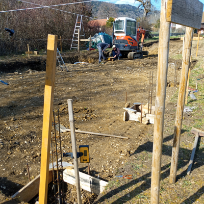 L'atelier fera 60 m2, nous avons coulé les fondations et la dalle cet hiver.