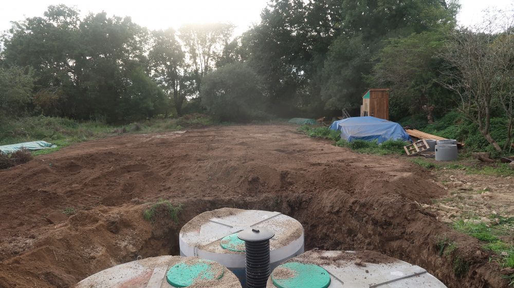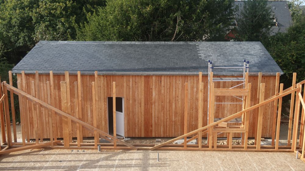 Après plus d’un an de recherche dans le Morbihan, on est tombés sur un terrain de 2700m² dans un hameau à quelques kilomètres de la Ria d’Etel et de la mer. Il accueillera dans un premier temps un garage qui permettra de stocker outils & matériaux et d’avoir point d’eau, électricité (frigo et cuisine) et abri pour le chantier maison.
