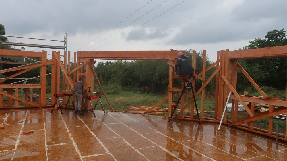 - des murs GREB : double ossature bois et isolation en bottes de paille, sourcées à 3 km du chantier !