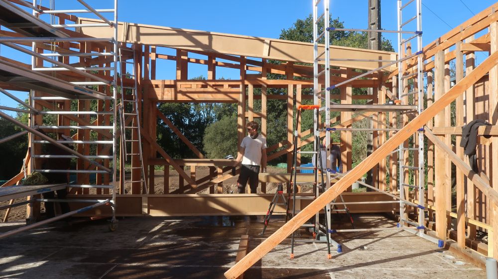 juillet-août : on monte les murs et la charpente