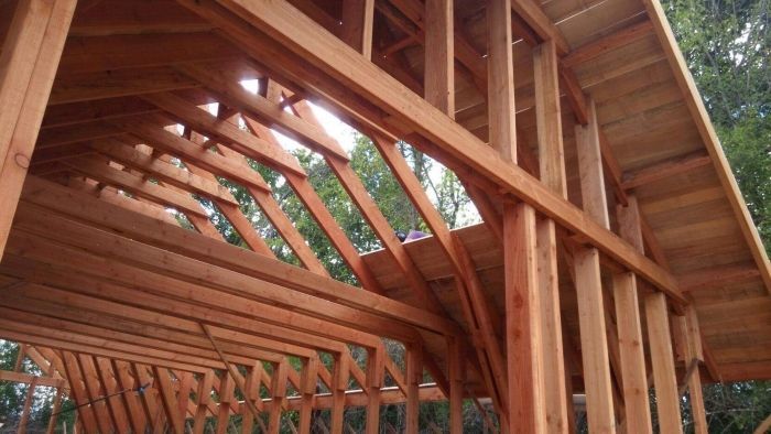 Cette première année est celle de la construction de notre atelier : 72m2 au sol + mezzanine sur la moitié de la surface, fondations cyclopéennes, ossature en cadres canadiens, bardage mélèze brut de sciage et couverture landrybac imitation zinc.