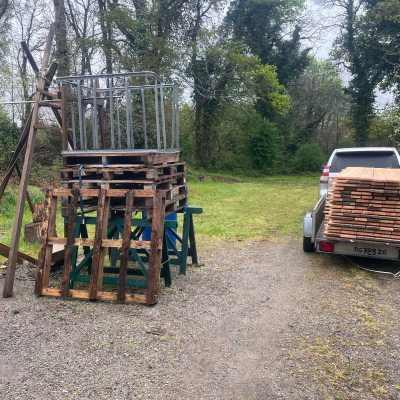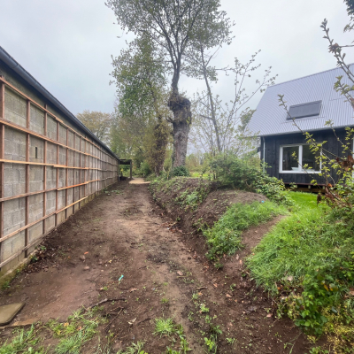 Il nous reste le hangar de 25 m de long à recouvrir en bardage bois brûlé à la japonaise.