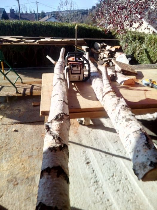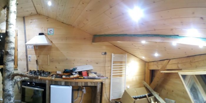 Trois bouleaux sur fond de forêt dans les alpages du Haut-Doubs viennent accueillir une cabane suspendue.