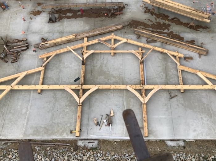 Rénovation d’un hangar qui servira d’atelier et de stockage pour le chantier (charpente, agencement, couverture)