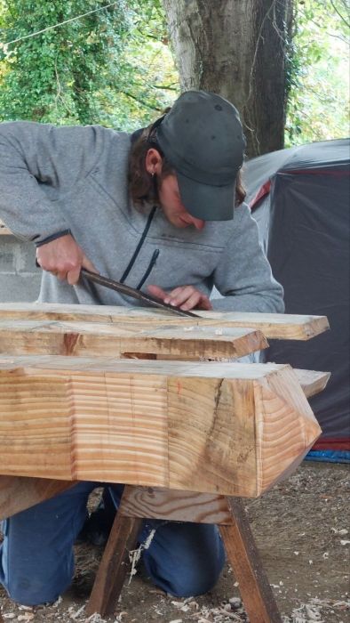 Il n’y a pas de journée type sur le lieu, le lundi matin réunion de chantier pour déterminer et lister les objectifs de la semaine avec tout les habitants, bénévoles présents.