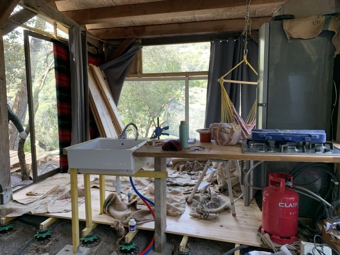 Nous avons un hangar (un toit végétalisé et un mur en brique) sur le terrain avec un toit végétalisé. Nous aimerions l’aménager et le fermer pour y vivre avec une méthode 100% récup' (palettes, sacs de jute, des baies vitrées et du bardage à l’extérieur) avec un budget le plus faible possible. Faire un plancher en bois sur plots. Une mezzanine pour le couchage des enfants. La surface au sol est de 50 m2. L’aménagement intérieur sera simple avec cuisine et sdb, ts à l’extérieur. Les matériaux les matériaux sont déjà sur place. Le chantier est prévu jusqu’au mois de mai. Nous recherchons des personnes pour nous accompagner sur ce chantier en journée. Nous sommes tous les deux bricoleurs et aimerions partager cette expérience avec d’autres personnes. Marco a déjà co-construit ce type d'habitat et à contribuer à la construction de nombreuses commodités en bois sur des eco-lieux. Ma seule expérience en construction est liée aux projets de construction du terrain : TS, cuisine en bois, SDB et yourtes.