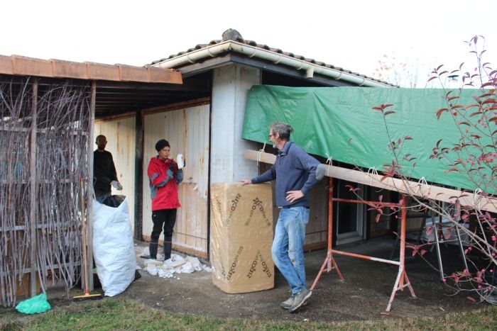 Les murs sont constitués par 2cm de bardage bois à l’extérieur, 8cm de polystyrène pour l’isolation et 2cm de bardage bois à l’intérieur. Pour améliorer l’isolation et lui redonner un coup de jeune, j’ai décidé de changer l’isolant actuel par 16 cm de fibre de bois et de remplacer le bardage extérieur en pin par du bardage en douglas. Le projet a été finalisé avec des professionnels locaux, adhérents de TWIZA, ‘’L’autre Maison’’, situés à Uzeste, à 5km de chez moi.