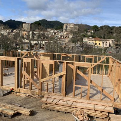 Une première partie semi-enterrée maçonnée à été réalisée par des professionnels. Sur celle-ci, nous sommes en train de construire une maison de plain-pied, en ossature bois, d’après la technique développée par Emmanuel Deragne. Une fois le hors d’eau atteint, nous pourrons isoler en paille et laine de bois. Pour finir, nous poserons l’enduit terre en intérieur sur la paille.