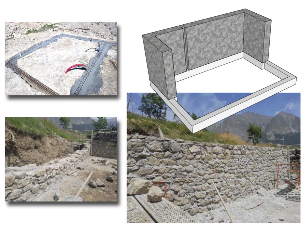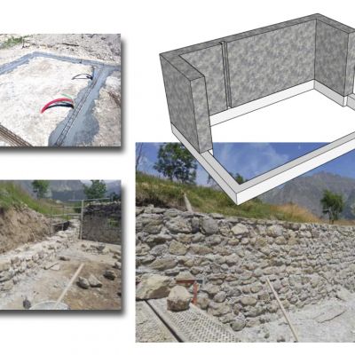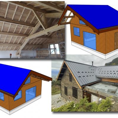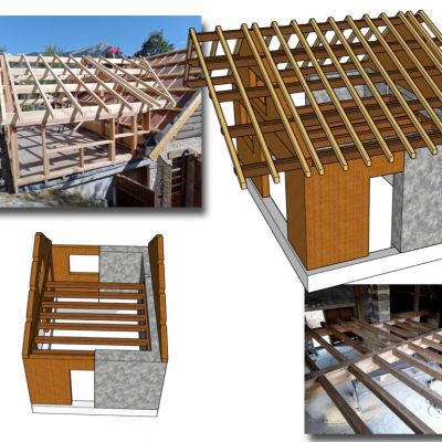 Soubassement pierre et création de la terrasse en mélèze massif.