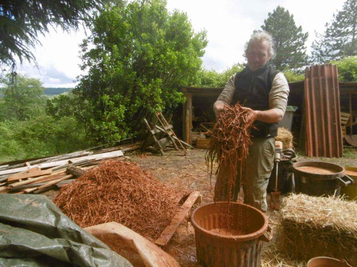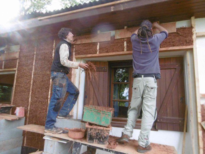 Le chantier consiste à pratiquer des techniques naturelles de construction (isolation extérieure d'un des murs de la maison en paille allégée + enduit en torchis terre/paille avec terre rouge locale, enduit de finition chaux/terre d'un atelier, badigeons chaux/sable des murs intérieurs...). Mais nous prenons en même temps le temps de vivre ce que le travail de l'argile produit en chacun.
