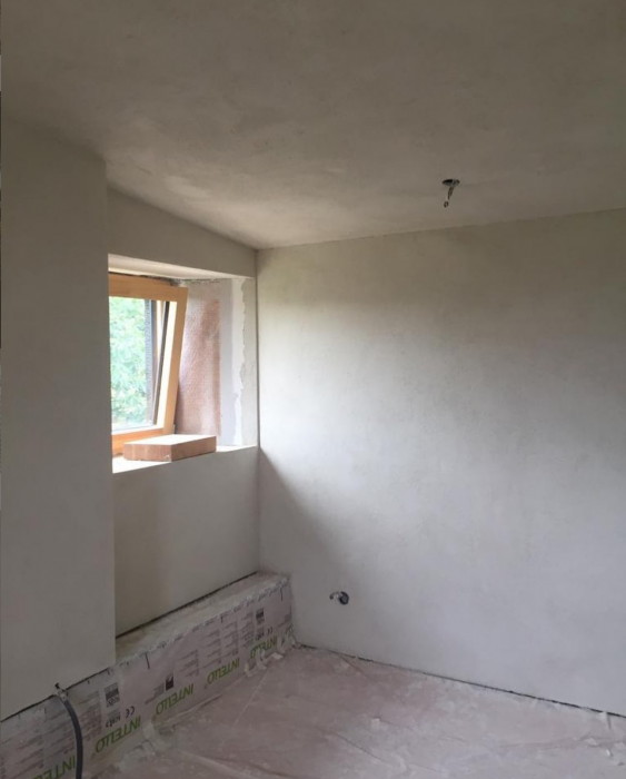 Réalisation des cloisons intérieures (rails et placo, isolation laine de bois, boitiers électriques, portes intérieures..),