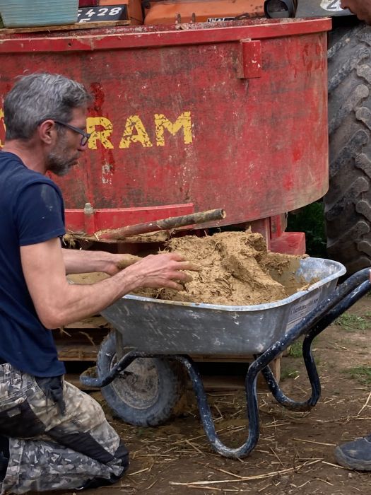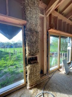 Le chantier s'inscrit dans la construction d’une petite maison de 50 m2. Les murs en ossature bois ont été posés sur une dalle en bois. Le chantier participatif concerne l’isolation en paille et la pose des enduits en terre. Ces deux chantiers se feront en étant accompagnés par Guillaume, un professionnel de ces magnifiques techniques.