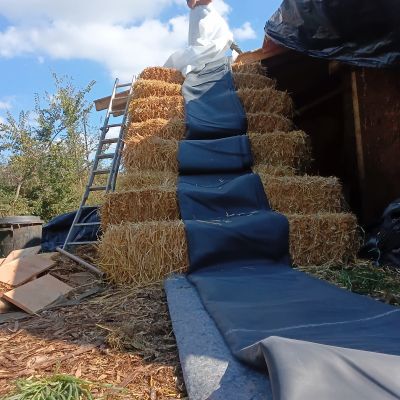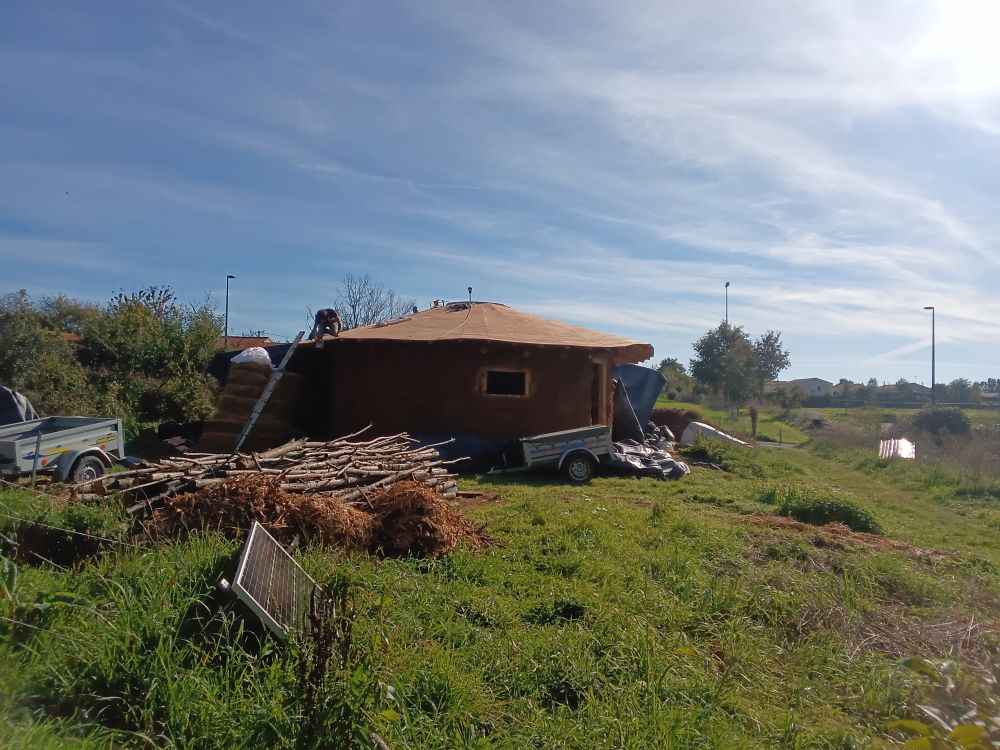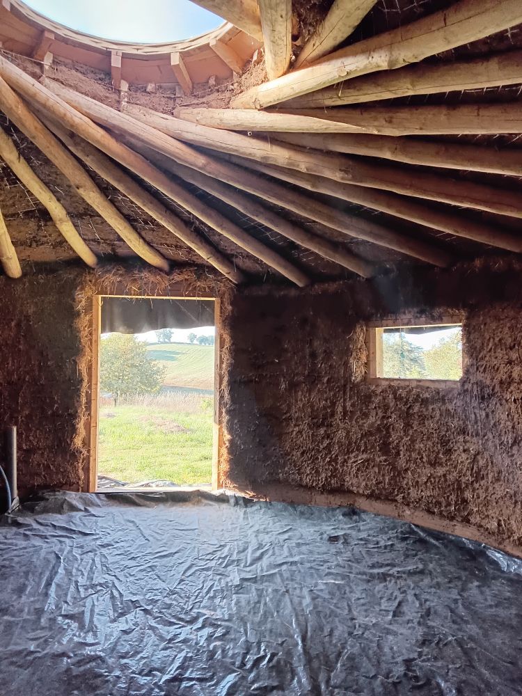 - S17-S19 : montage des murs en bottes de paille de la pièce de vie ronde