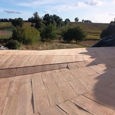 - S30-33 : couverture (pose des chevrons de la lame d’air et voligeage)