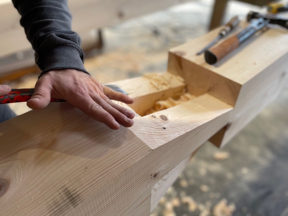 Sylvain , quant à lui, Charpentier depuis 19 ans, je possède tout le matériel nécessaire (atelier, banc de scie, échafaudage, camion grue, électroportatifs...) pour mener a bien ce projet dans de bonnes