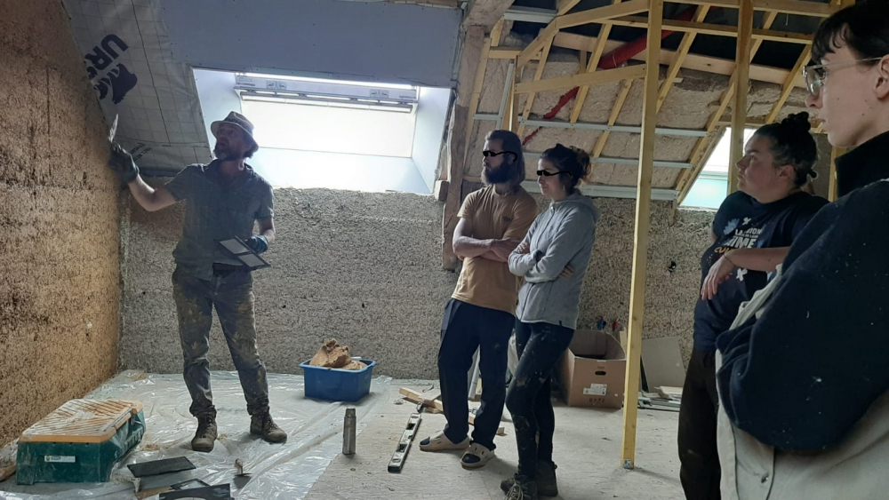 L'été dernier portait sur la thématique du chaux-chanvre, cette année ce sera la terre dans tout ses états : Isolation paille-terre, corps d'enduit de finition et joints à la terre seront au programme des chantiers de l'été.