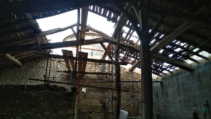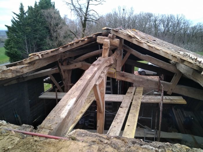 Actuellement, je suis sur la rénovation de la charpente de la grange, puis la couverture.