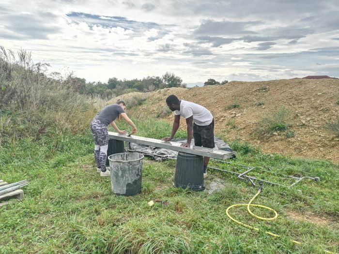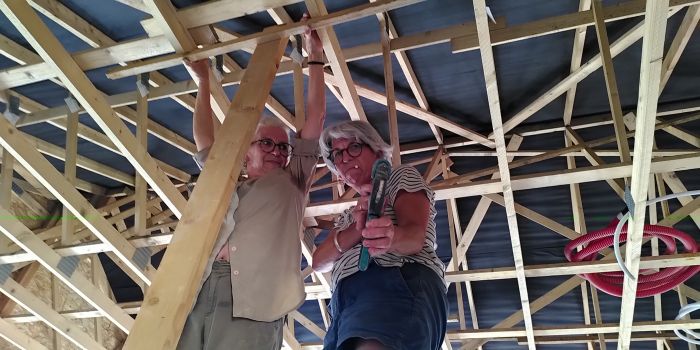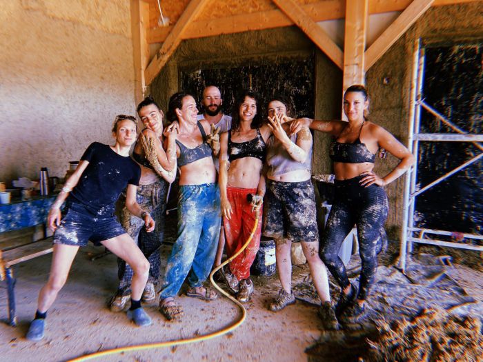*De début juin à mi-juillet, la suite de la construction se fait en chantiers participatifs, encadrés Phylippe Méau (https://vivenergie.twiza.org/) , notre thermicien, assistant à maîtrise d’ouvrage, et formateur, spécialisé dans l’encadrement de chantiers participatifs de construction paille et enduits. Nous accueillerons pour cette période 6 bénévoles, pour une durée de 2 ou 3 semaines dans l'idéal: