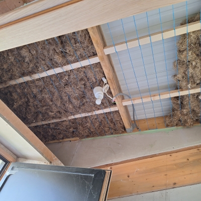 Nous y avons déjà refait le solivage et le plancher de l'étage, refait une partie de la longère avec 2 pièces et surtout une salle de bain qui devrait être terminée pour mi juin ! Donc avec une douche tout confort grâce à un système de chauffage d'eau tri énergie.