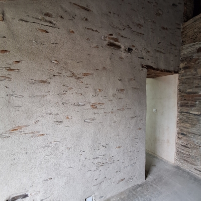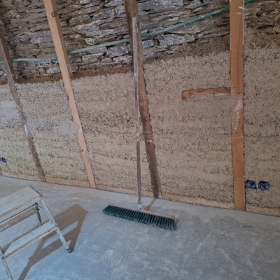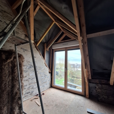 Le chantier vise à améliorer l’isolation d’une longère en pierres de schiste.