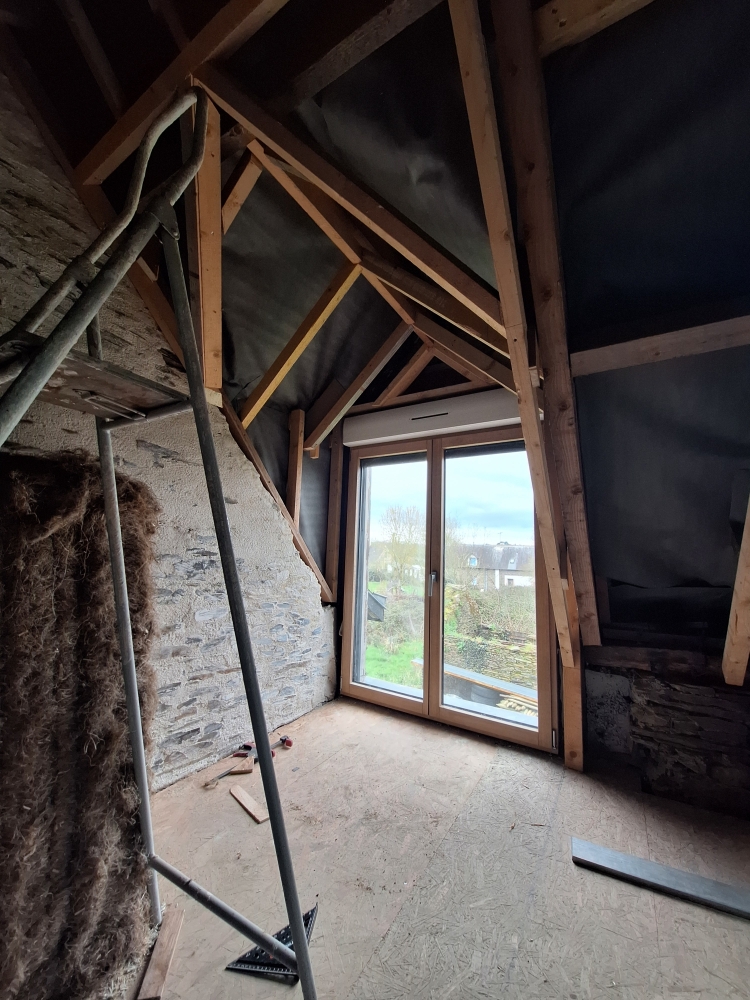 Nous avons acquis une grande longère en 2022. Depuis 3 ans nous nous efforçons de la rénover dans le respect des vieilles bâtisses en pierre.