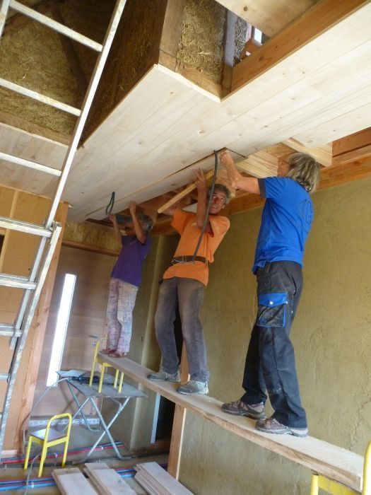 pose des tommettes , plafonds en peupliers, planchers en cyprès
