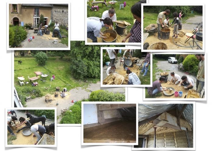 comme : extensions bois-paille, four à pain, rénovation terre, toiture, charpentes, cloisonnement et plancher bois, isolation, électricité, mise haut d'une marre...