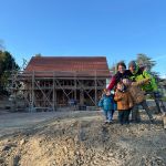Le gros du terrassement s’est terminé en juillet 2024, suivi du coulage de la dalle béton. Paul-Marie s’est ensuite lancé dans le projet fou de scier lui-même sur une scierie mobile les troncs de Douglas en poutres, planches pour l’ossature.