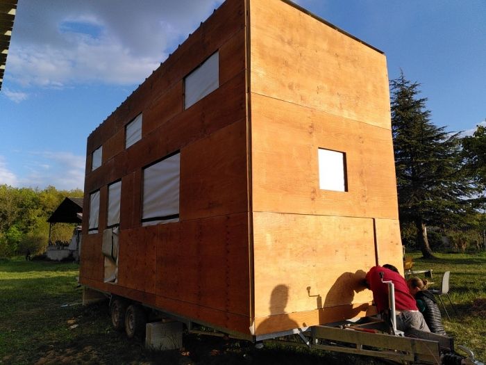 Après 2 ans à se préparer et se former progressivement, nous avons démarré en Janvier 2020 la construction de 2 mini-maisons écologiques quasi-autonomes en eau et en électricité. Après 6 mois de chantier dont 2 mois de confinement, nous avons terminé la première de nos 2 Tiny House.