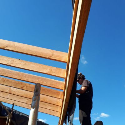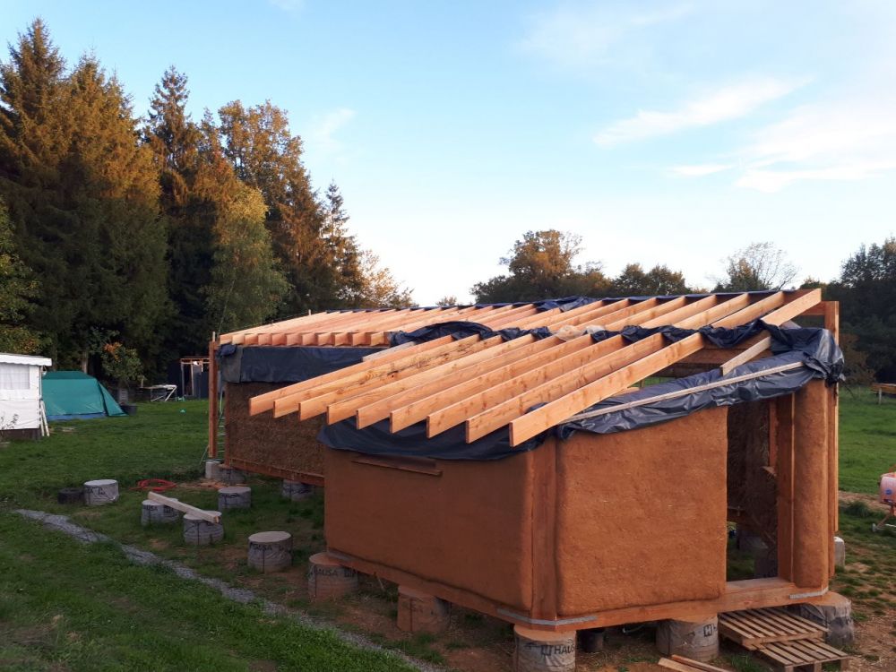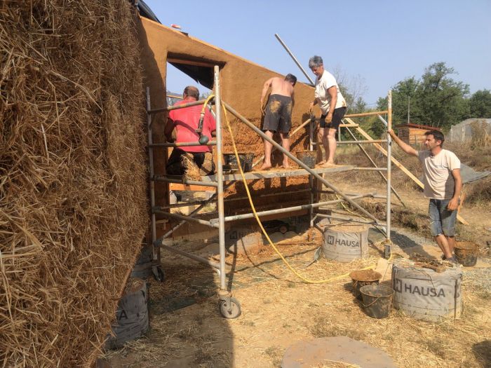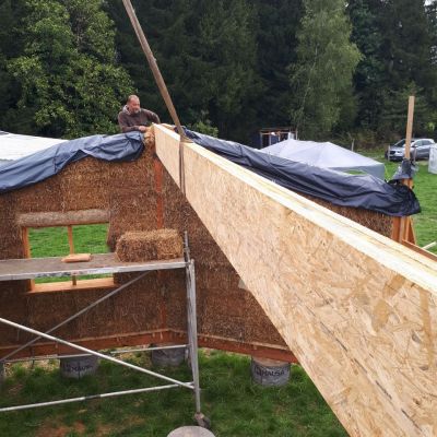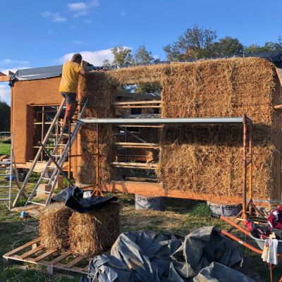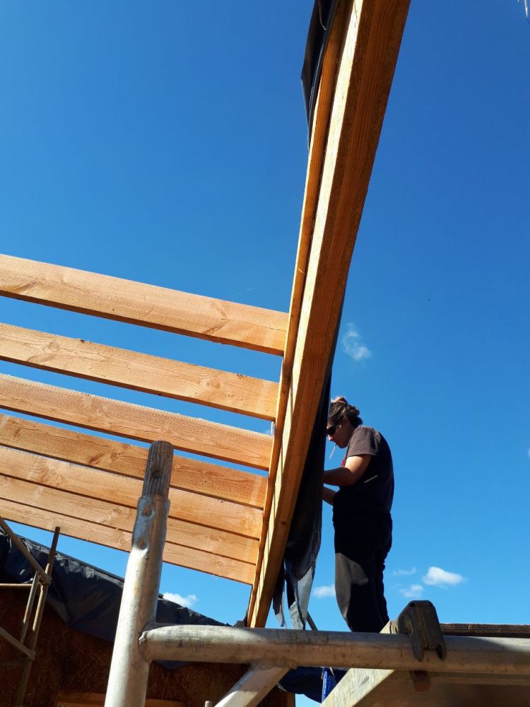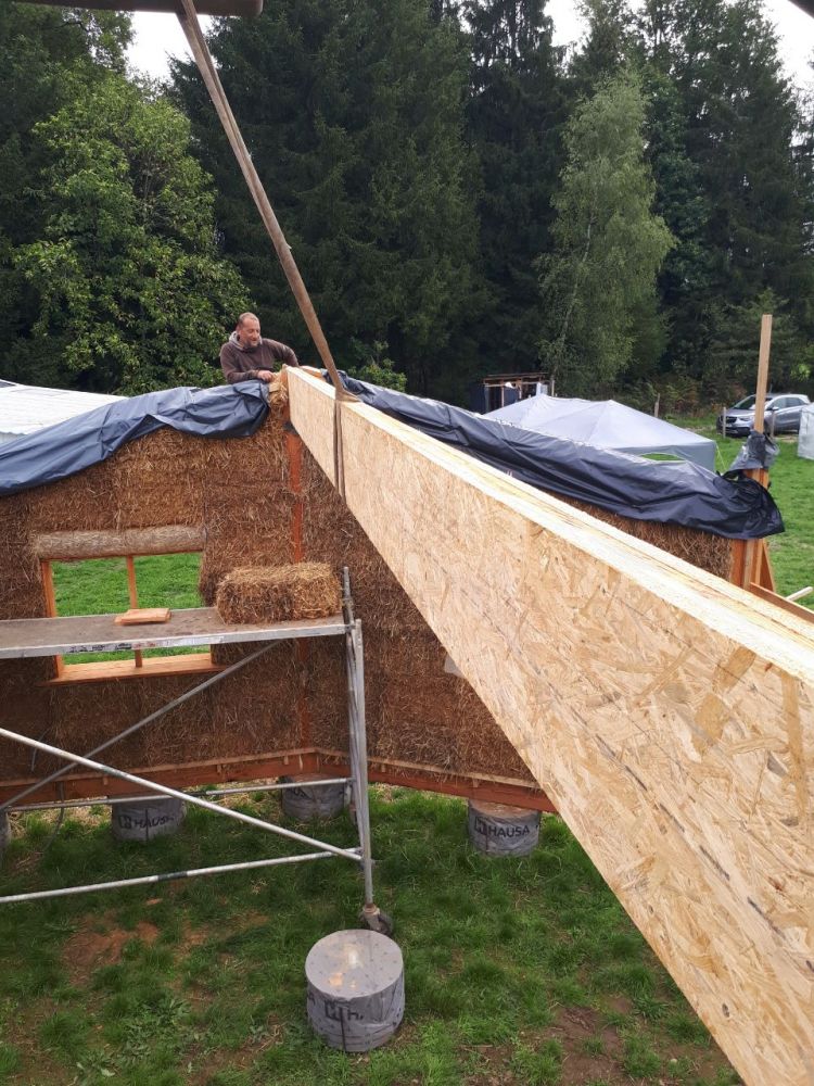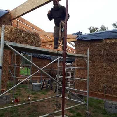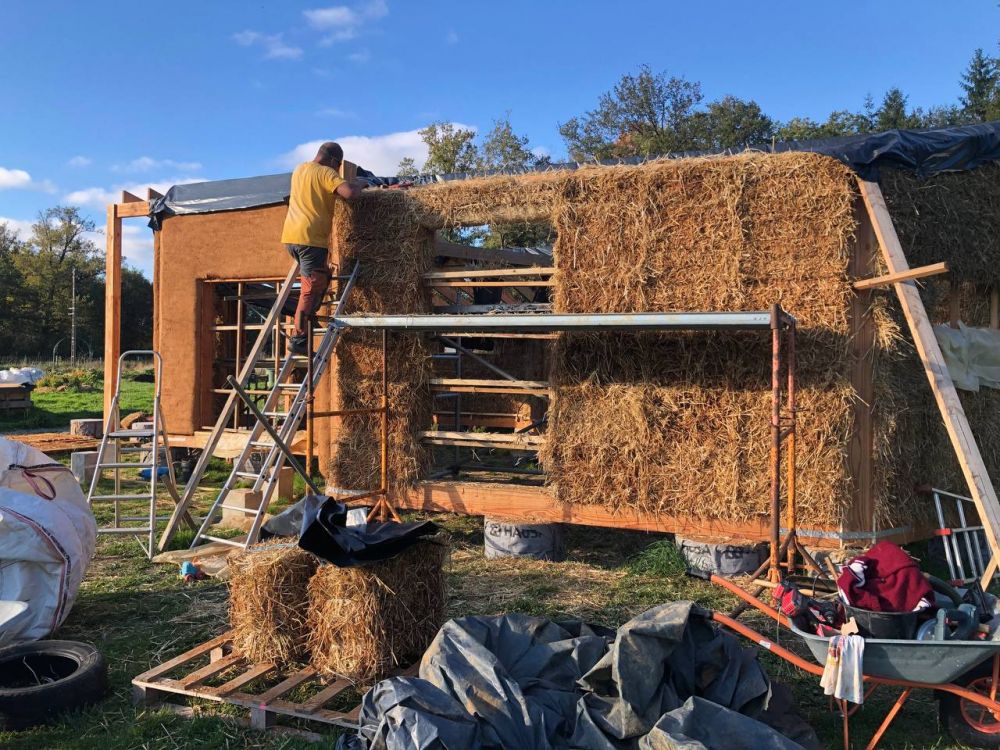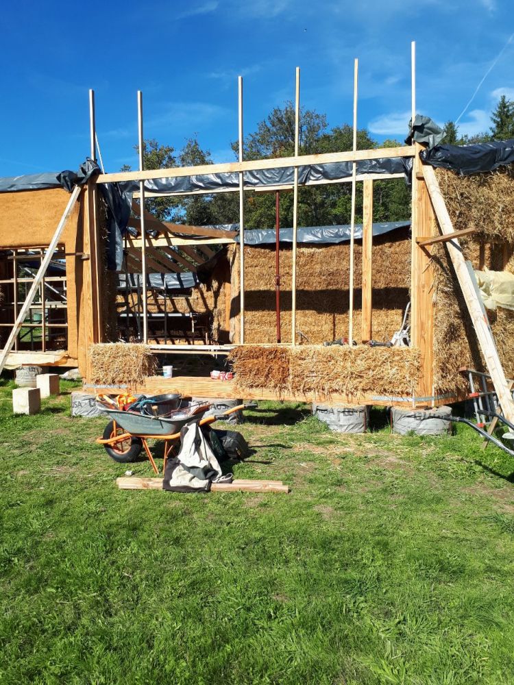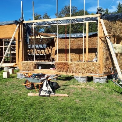 - construction des murs, structure bois et Cellule Sous Tension avec des bottes de pailles