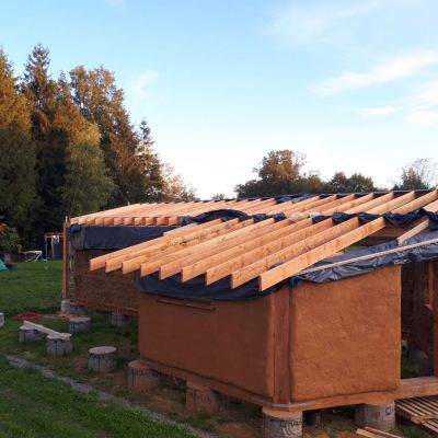 Après 3 ans d’aventure sur la route à me former avec l'association Flexagone sur différents chantiers participatifs en France et en Espagne dans la construction terre, paille, bois, nous avons décidé de poser nos valises en Dordogne afin de créer notre lieu de vie.
