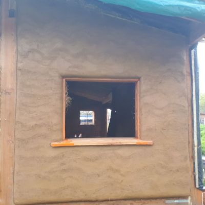 Notre objectif ensemble sera de finir les murs en enduit terre sur les différents modules ainsi que la toiture.