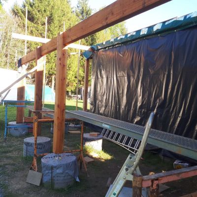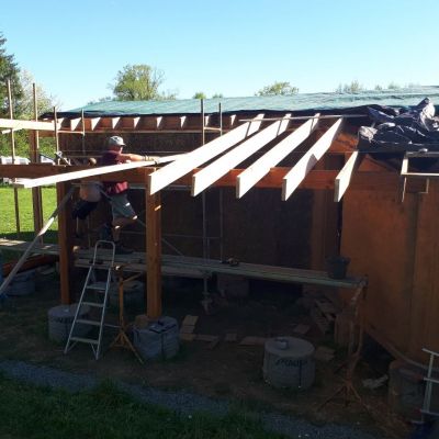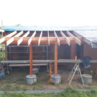De plus un chantier participatif d'1 semaine sera prévu pour l'isolation de la toiture en paille et la pose de la couverture . ( date à définir)
