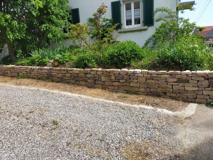Il reste à construire un mur de 5 mètres de long sur environ 50cm de haut. La pierre utilisée est du grès des Vosges.