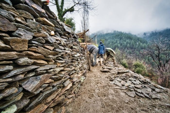 L’espace d’une semaine, venez m’aider à remonter un mur de 7-8m de long sur 1m de haut et construire un escalier avec marches en surplomb, le tout en utilisant exclusivement des pierres, sans aucun liant, ni ciment, ni terre, rien que du schiste !