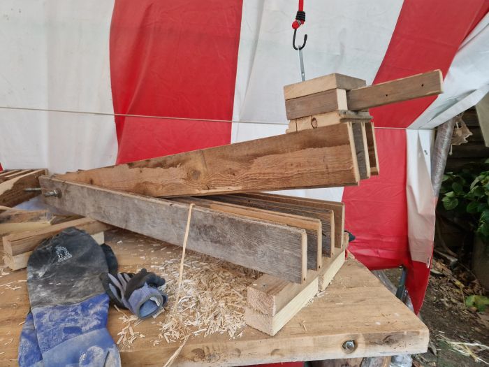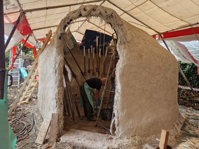 C’est notre troisième chantier. Nous devons faire les enduits intérieurs et extérieurs ainsi que les gouttières et sculptures.
