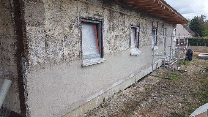 Plusieurs chantiers vont s'enchaîner. Pour le moment, nous sommes à l’ossature bois. S’en suivra la pose de la paille, puis enduit chaux sur l'extérieur et enduit terre à l’intérieur.