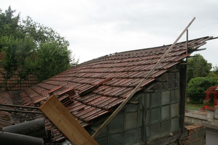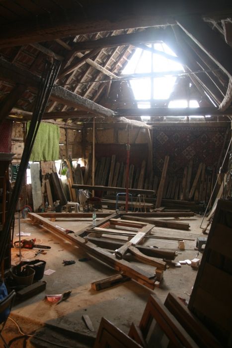 - Dépose des anciens chevrons en rondins, puis dépose des tuiles.