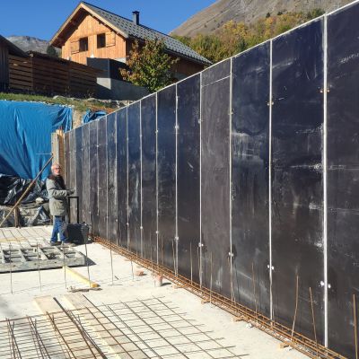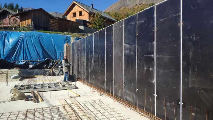 Dans un premier temps (Juin 2025), nous construirons un gros sous-sol, malheureusement en béton (radier + murs banchés) car la commune connaît de nombreux mouvements de terrain, et l’urbanisme ne nous laisse guère d’options à cette étape.