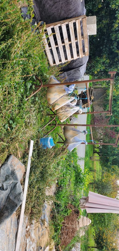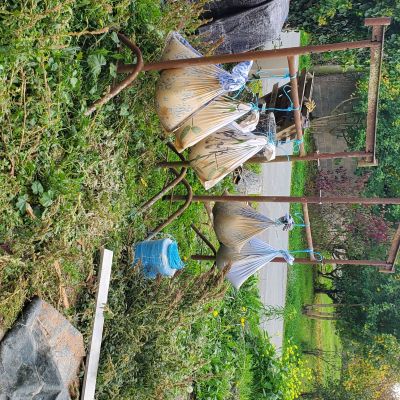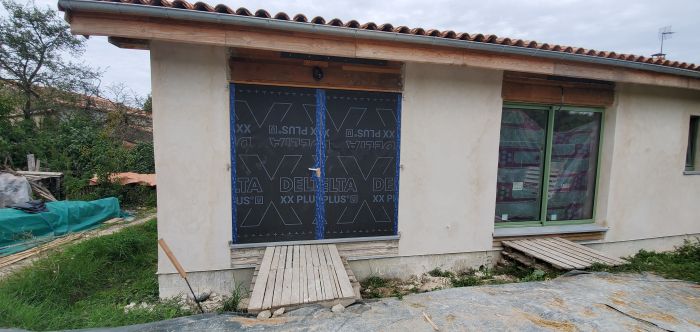 Les fondations ont été creusées/coulées en juillet/août 2023 et l’ossature bois, faite par des professionnels, a été faite en novembre 2023. En janvier 2024, c’est la toiture en tige de